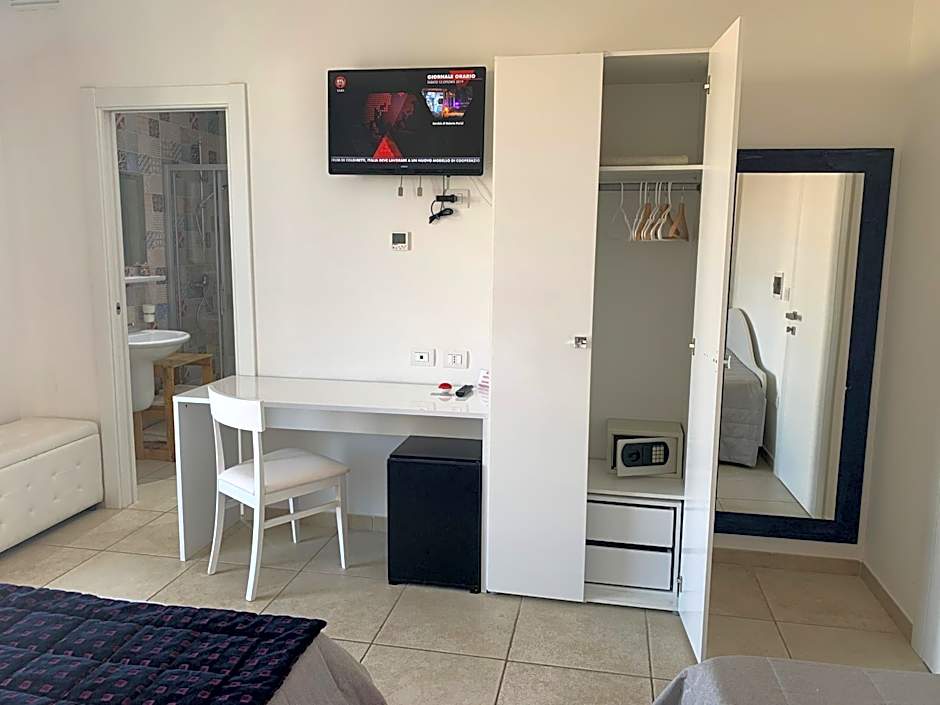 Includes a flat-screen TV with satellite channels. Rooms either face the front or the back side of the hotel.